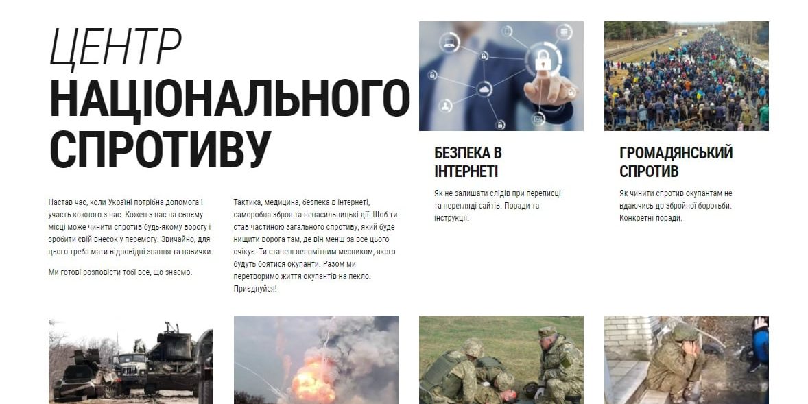 На сайті ви можете дізнатися свіжі новини щодо національного спротиву, як збирати і передавати інформацію про ворога, активні методи громадянського спротиву, поради як діяти при пораненні, травмах і наданні першої допомоги, про безпеку в інтернеті тощо.