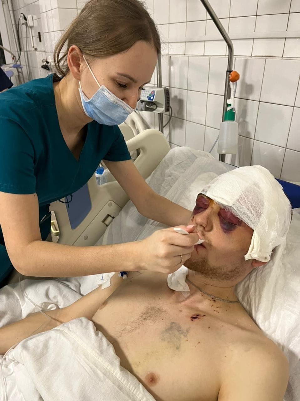 — Пацієнт Микола. У Харкові уві сні він потрапив під бомбардування. Кістки черепа розламалися на кілька великих шматочків. Після зняття промоклої кров’ю пов’язки було видно мозок. Закривавлені пульсівні судини головного мозку вказували, що життя ще тепліє в його тілі. Глибока кома. Мозок вимкнув усі життєві функції. Як пазл, професор Андрій Сірко та нейрохірург Станіслав Поронік, пригнічуючи втому, під мікроскопом, відновлювали череп та зробили все, щоб зберегти чоловіку мозок. Через п’ять діб Микола прокинувся. Він був знятий з апарату ШВЛ і сам задихав. Його першими словами були — де я? Сьогодні медсестра Маша — найближча для нього людина. Рідних, друзів та всіх, кого раніше знав, наразі не пам’ятає — амнезія. Біль і страждання… — розповів генеральний директор лікарні Сергій Риженко.