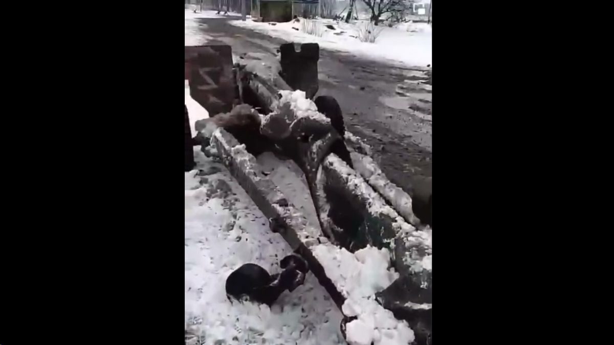 Цього разу на відео здивуванню українських воїнів немає меж: на гарматі два різні колеса, ствол засмічений, фарба снігом змивається. Крім того, літера z написана неправильно.