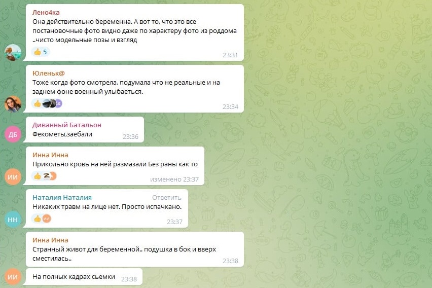 У низці російських телеграм-каналів, що використовуються в інформаційній війні проти Україні, також поширюють безпідставні твердження, що «українські нацисти» вигнали всіх лікарів задовго до авіаудару та влаштували свою вогневу точку в лікарні й пологовому будинку. Із повідомлень випливає, що авіація окупаційних військ РФ «мала підстави» здійснювати такий авіаналіт.