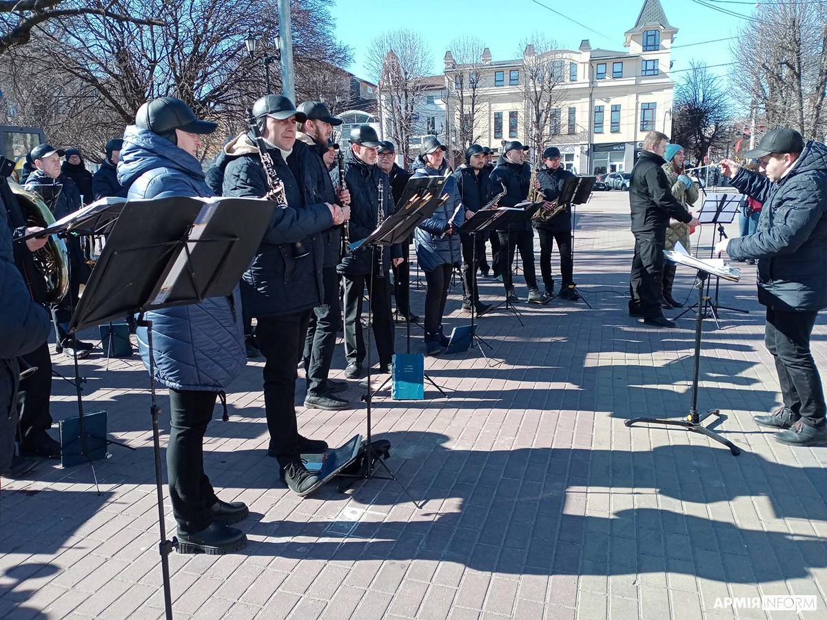У центрі Хмельницького біля кінотеатру імені Т. Г. Шевченка муніципальний естрадно-духовий оркестр влаштував флешмоб: «Закрийте небо над Україною!».