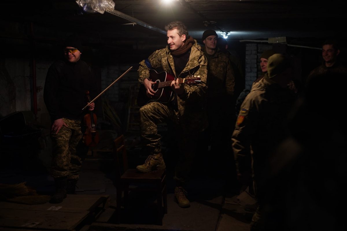Сюди він приїхав разом із побратимом, скрипалем з його гурту Мойсеєм. Разом вони влаштували для воїнів-лицарів імпровізований концерт.