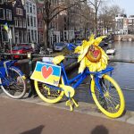 На багатьох будівлях Амстердама нині майорять синьо-жовті знамена. У вітринах крамниць та офісів — усе також у кольорах Державного Прапора України. Нідерланди — з Україною.