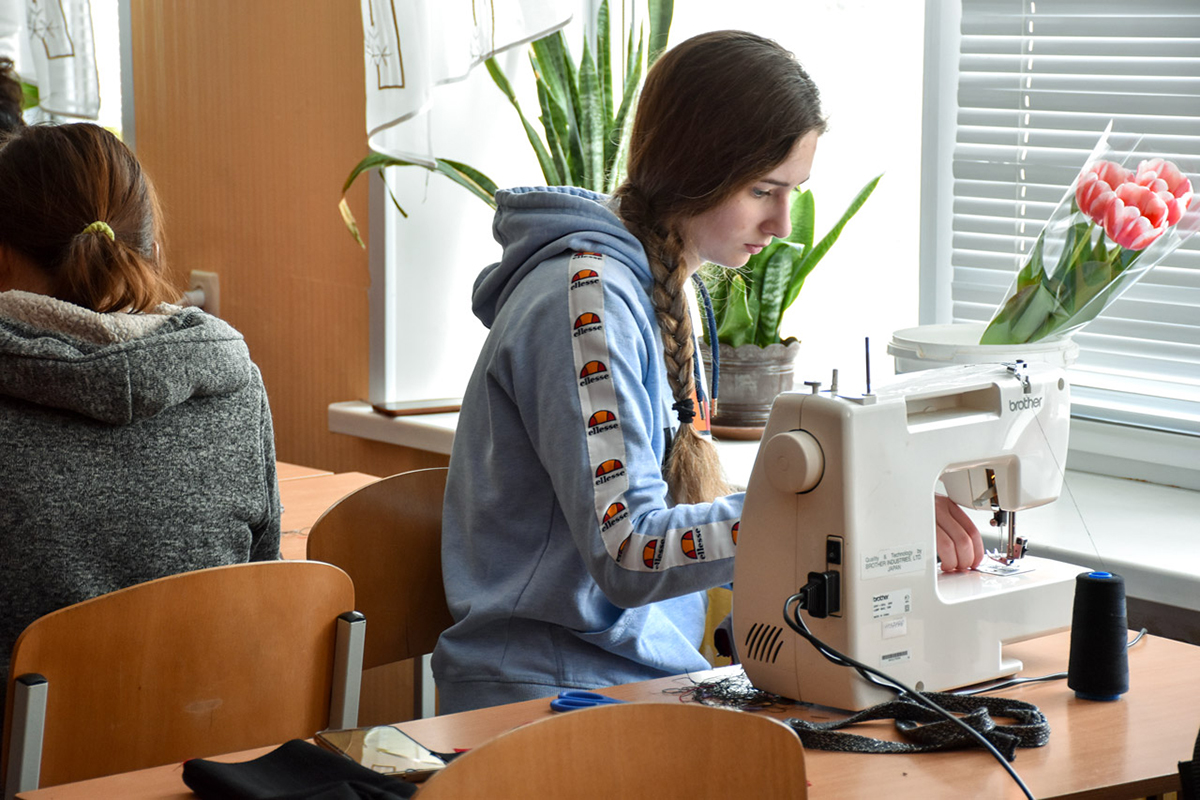 Наприклад, одна з полтавських шкіл налагодила у своїх приміщеннях виробництво одягу й амуніції для військових. На базі майстерень із трудового навчання відкрили швейний та нарізний цех. Там виготовляють балаклави, рукавички, рюкзаки, смужки для маскувальних сіток тощо.