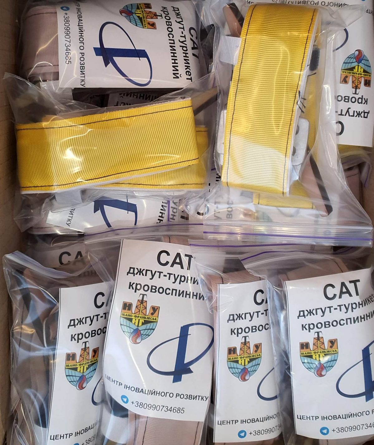 На базі Центру інноваційного розвитку Івано-Франківського Національного технічного університету нафти й газу працівники разом із волонтерами організували виготовлення кровоспинних джгутів типу CAT для потреб Збройних Сил України.