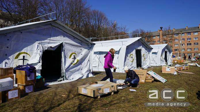 У цьому польовому шпиталі, який розгорнула американська Міжнародна гуманітарна організація «Сумка Самарянина», надаватимуть безоплатну допомогу постраждалим від війни українцям. Щодня пацієнтів прийматимуть американські лікарі й медичні сестри. Весь персонал сертифікований і працює в Україні як волонтери.