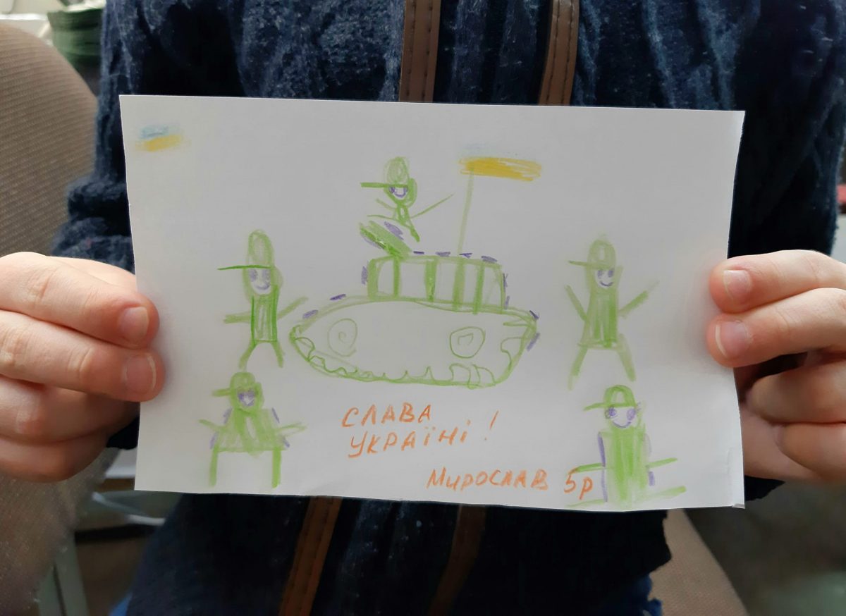 А це — п’ятирічний Миросик, він малює для наших захисників.