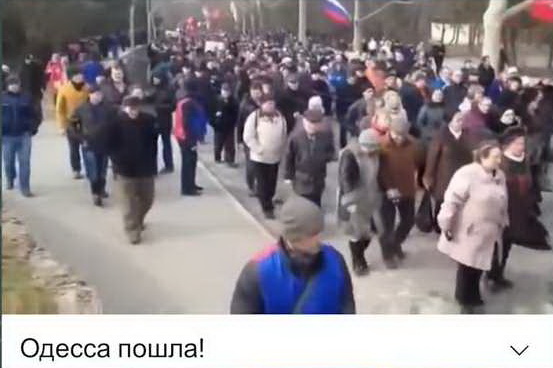 Титруючи відеоряд березня 2014 року, пропагандисти видають його за події березня 2022 року. Начебто одесити зараз виходять на вулиці з акціями в підтримку російських загарбників.