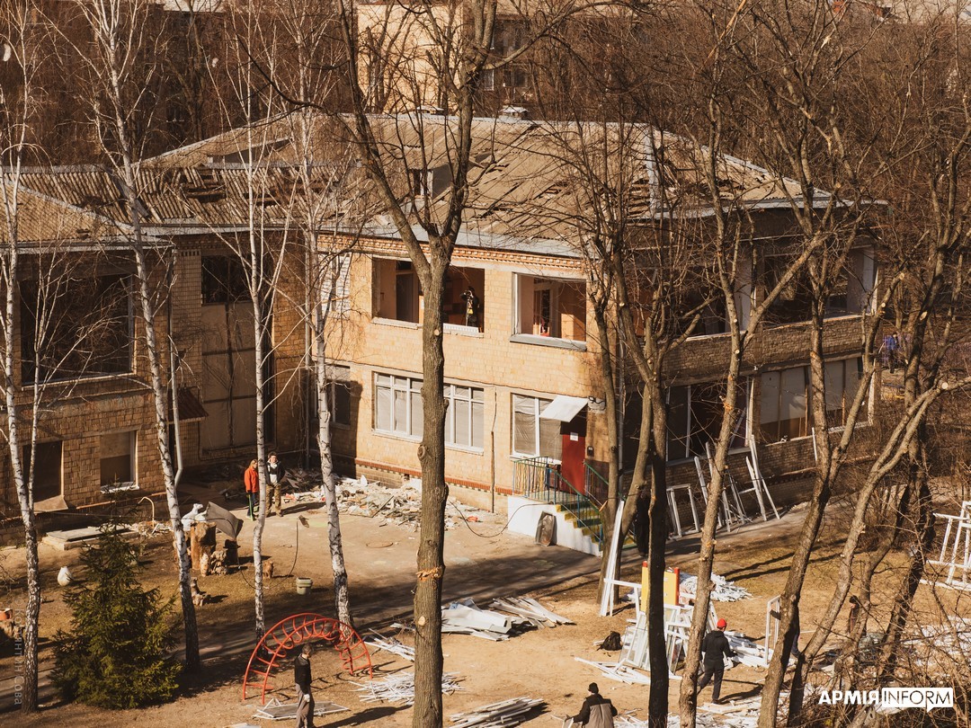 Фотограф Костянтин Савенко задокументував для Гааги наслідки ракетно-бомбового обстрілу будинків, дитячого садка і школи київської історичної місцевості — Виноградаря в Подільському районі столиці. Такі атаки сплячого міста, на жаль, стали для нелюдей звичною кривавою справою. Уникаючи наших воїнів, російські убивці з території «нейтральної» білорусі несуть смерть і страждання нашим жінкам і дітям.