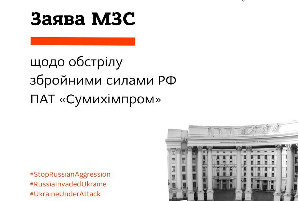 У цьому зв’язку МЗС України рішуче засуджує обстріл 21 березня російськими збройними силами території ПАТ «Сумихімпром».
