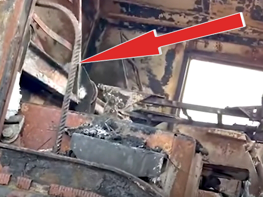 Під час попередньої оцінки залишкової вартості комплексу наші спеціалісти виявили цікаве, можна сказати, нестандартне рішення в обладнані наддорогої бойової машини. Інтерес бійців викликали поручні для підіймання екіпажу в кабіну. Виявилося, що їх зробили ні з чого іншого, як зі звичайнісінької сталевої арматури. Гадаємо, що саме шматок арматури, за задумом російський інженерів, мав надати зручності й комфорту російським окупантам у «визвольній» війні. Можливо саме структура арматурного прута повинна була надати тактильної інформації незрячим і слабозорим російським солдатам. Попереджаємо їх про те, що кожного хто прийшов на нашу землю, чекає вірна смерть!