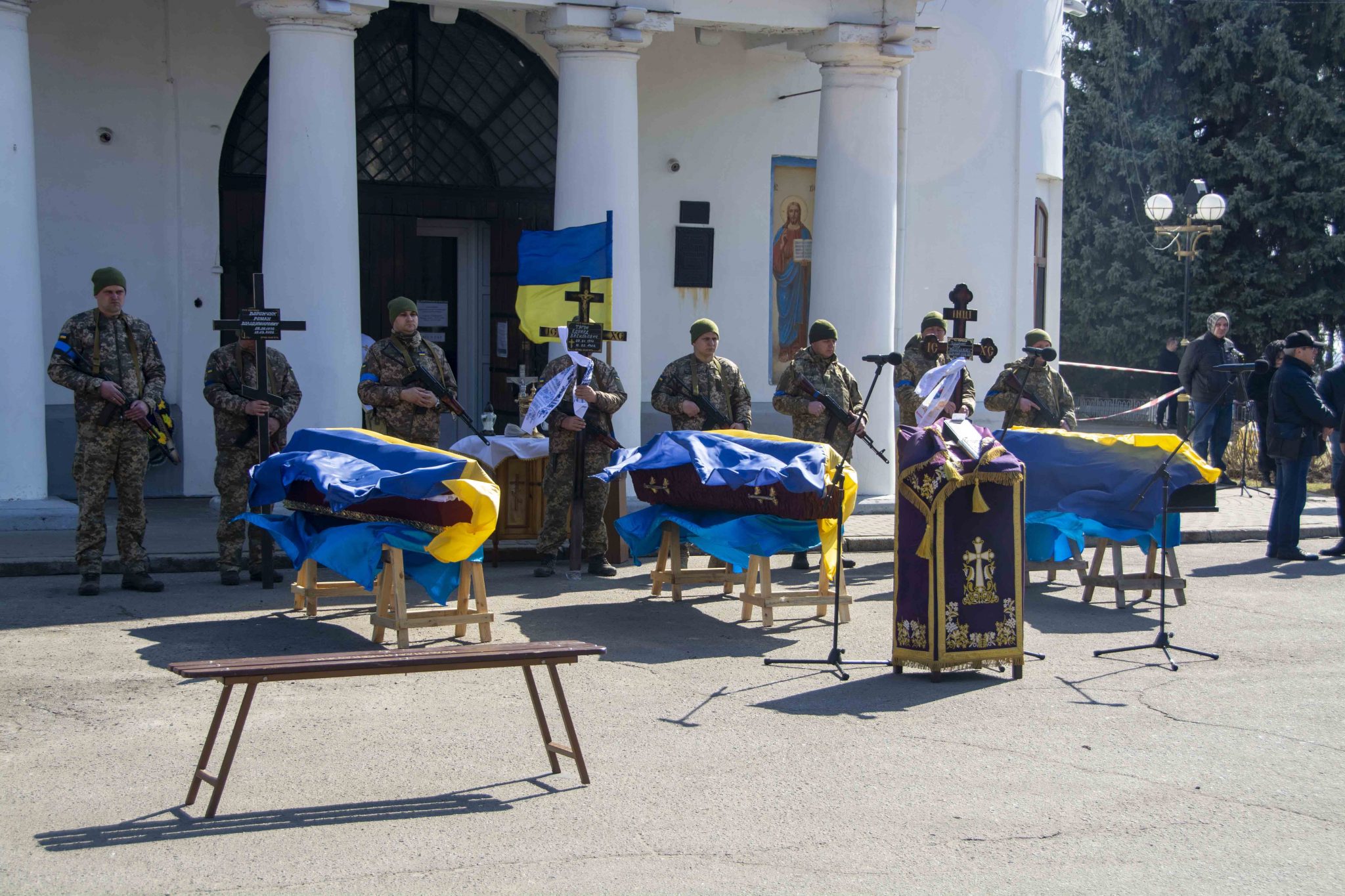 Сьогодні, 24 березня, у Полтаві попрощалися з трьома українськими військовослужбовцями, які загинули під час боїв з російськими окупантами.