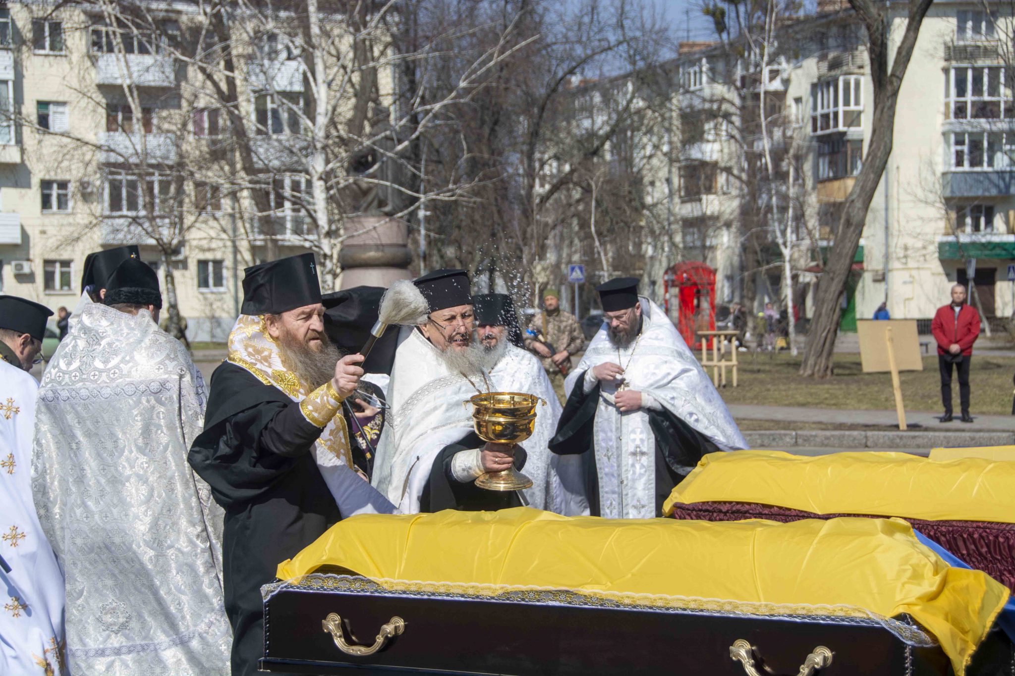 Під час панахиди у Полтаві вкотре оголосили повітряну тривогу. Під протяжний сигнал сирен присутні попрощалися з українськими героями. Поховали захисників у громадах на Полтавщині під прощальні постріли військових та виконання Державного Гімну України.