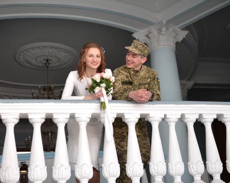 І весна, і сезон весіль, попри війну, в Україні тривають. У Житомирі на весільний рушник стали захисник України Петро і його кохана Тетяна — відтепер обидва носять прізвище Прохорчук. Ці молодята, незважаючи на воєнний стан, відзначили весілля більш-менш святково: наречений — у пікселі, а наречена — все ж таки у традиційній білій сукні.