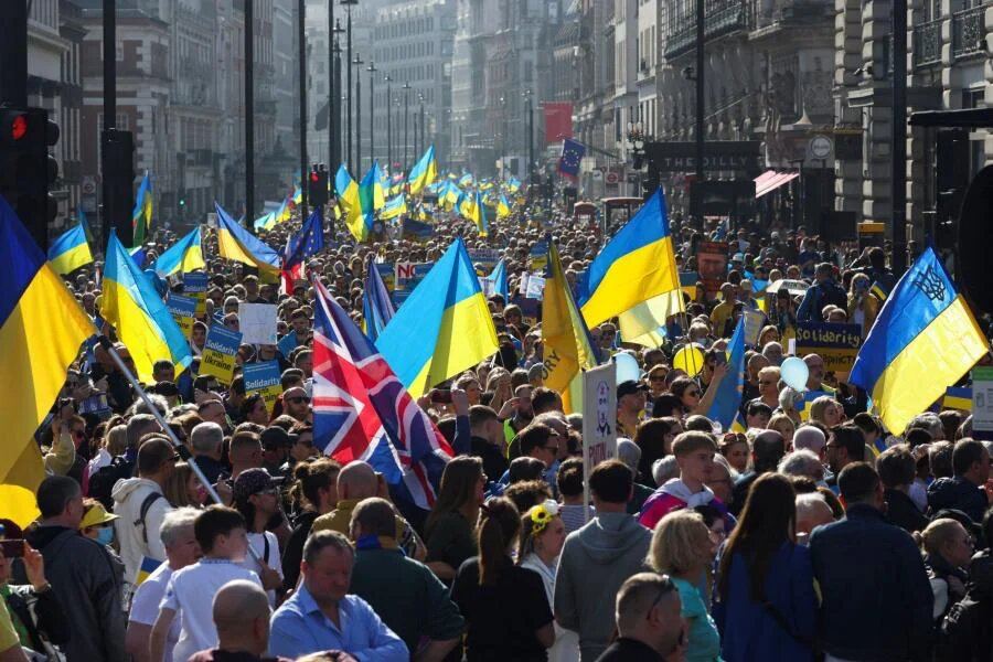 Президент України Володимир Зеленський переконаний, що у світі зараз все більше людей, які підтримують нашу країну в боротьбі з російськими загарбниками. Щодня тисячі людей виходять на мітинги на підтримку України у війні.