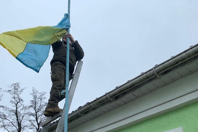 Після визволення 1 квітня від російських окупантів селища Немішаєве Бородянського району на Київщині, нацгвардійці вивісили державний прапор на приміщення селищної ради, повідомляє Міністерство внутрішніх справ України.