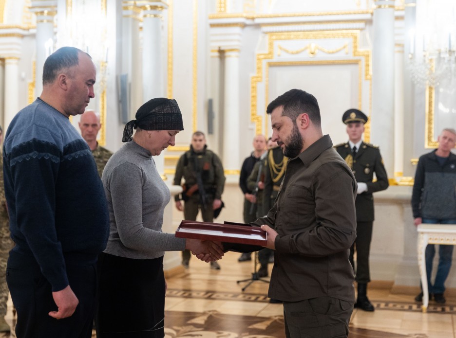 Президент України Володимир Зеленський вручив ордени «Золота Зірка» військовослужбовцям Збройних Сил України, яким присвоєно звання Героя України та членам родин військових, які відзначені цим званням посмертно.