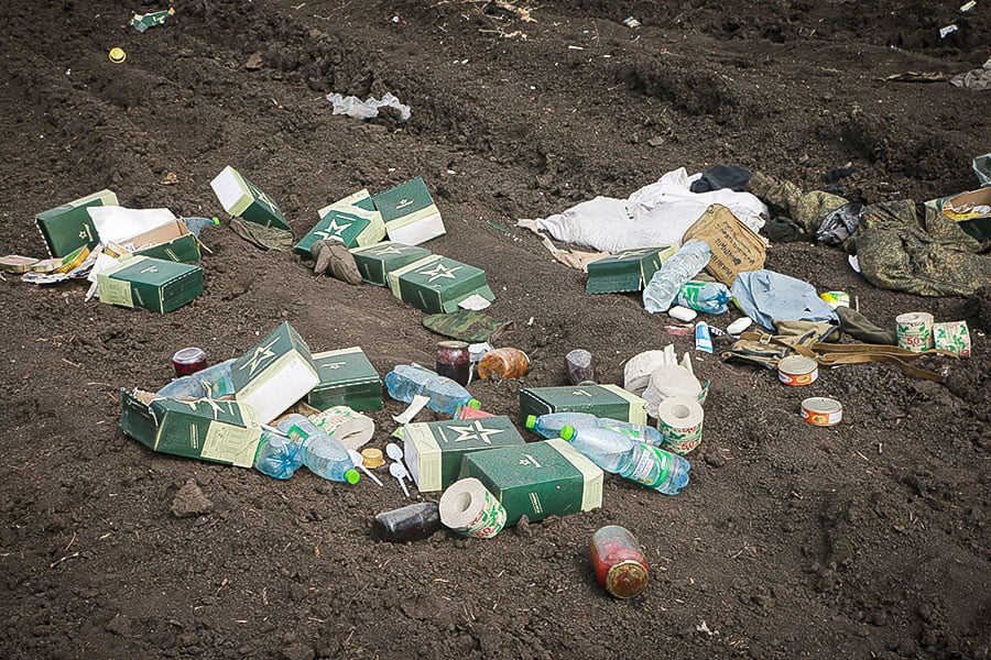 «Проте настільки жорстоке та негуманне озброєння жодним чином не врятувало російську молодь, яку нагнали у цю лісосмугу на околиці Харкова. Зустріч з бійцями однієї з бригад Збройних сил України та добровольців харківського «Фрайкору» для багатьох з них стала останньою. Ворог встиг лише нарити неглибоких окопів та кілька бліндажів, натягнути накраденого у цивільних майна, продуктів, спиртного. Про інші захисні споруди та ходи сполучення між позиціями росіяни не подбали. Зате на місці їхньої безславної смерті було знайдено купу пропагандистської літератури, стінгазети «Гвардеец», «Чебуратор» та «Объектив»», – зазначають в НГУ.
