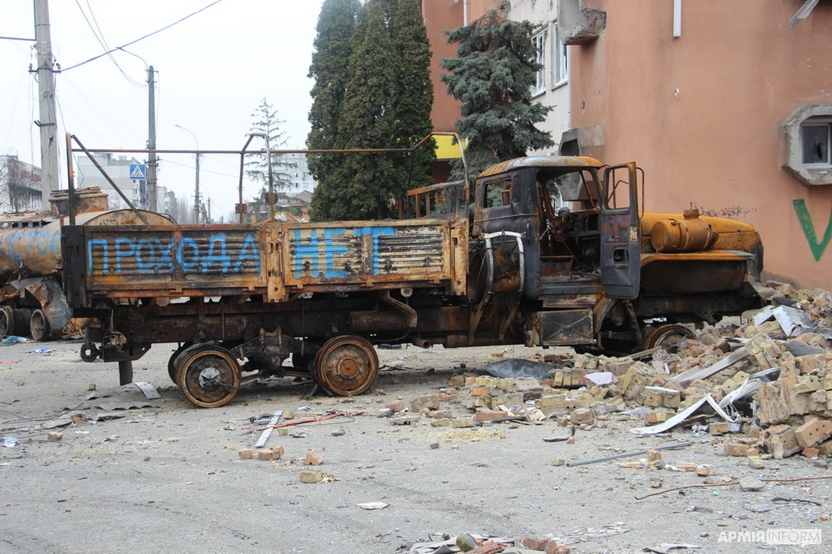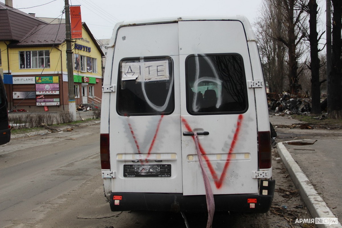 На стовпі, навпроти відділку поліції, якесь безграмотне російське лайно, хизуючись своїм предком-вбивцею, як завжди безграмотно написало свій позивний «Чикист». А трохи ближче до центра міста стоїть мікроавтобус, яким пересувались нелюди. Вже навіть не думаєш, про тупість і безграмотність істот, просто розумієш, що вони ниціта мерзенні потвори, бо воювати можуть тільки прикрившись жінками і дітьми.