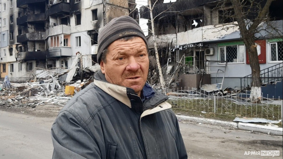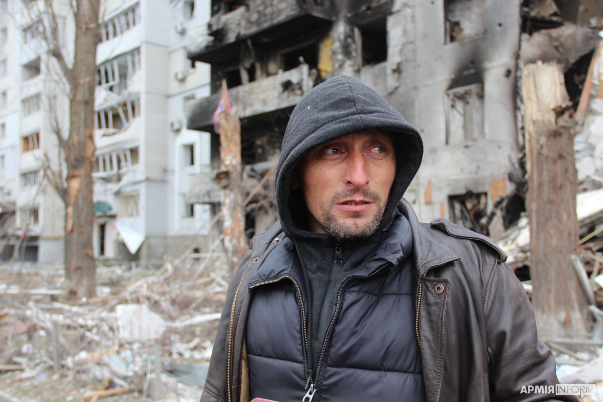 – В один із днів я бачив, як російський танк просто розстрілював наші будинки, а БМП – магазини довколишні. Їхали і просто все розстрілювали… А потім літак їхній скидав бомби на наші будинки. От цей будинок, біля якого ми стоїмо, тоді й було зруйновано. І окупанти не давали потім завали ці розгрібати та діставати людей звідти… Я не зможу цього всього пробачити росіянам. Люди, які це пережили, теж, думаю, не пробачать… Моїй бабусі зараз 87 років. Вона вже другу війну переживає. Вона в шоці. Тим більше, що за національністю вона росіянка. Виходить, що російські військові прийшли і звільнили її.. від кого? Від чого? Я не розумію взагалі, чому вони сюди прийшли!