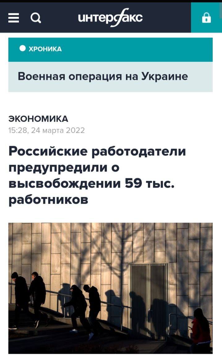 За підрахунками аналітиків, рівень безробіття в росії сягне рекордного рівня за останні 12 років. Ось що пише з цього приводу російський «Комерсант»: «До кінця 2022 року кількість робочих місць у російській економіці може скоротитися на 2 млн, через це рівень безробіття в країні зросте з нинішніх 4,4% до 7,1–7,8%… Зазначимо, що уряд поки що не представив свій сценарій розвитку ситуації на ринку праці, як і прогноз ВВП на цей рік».