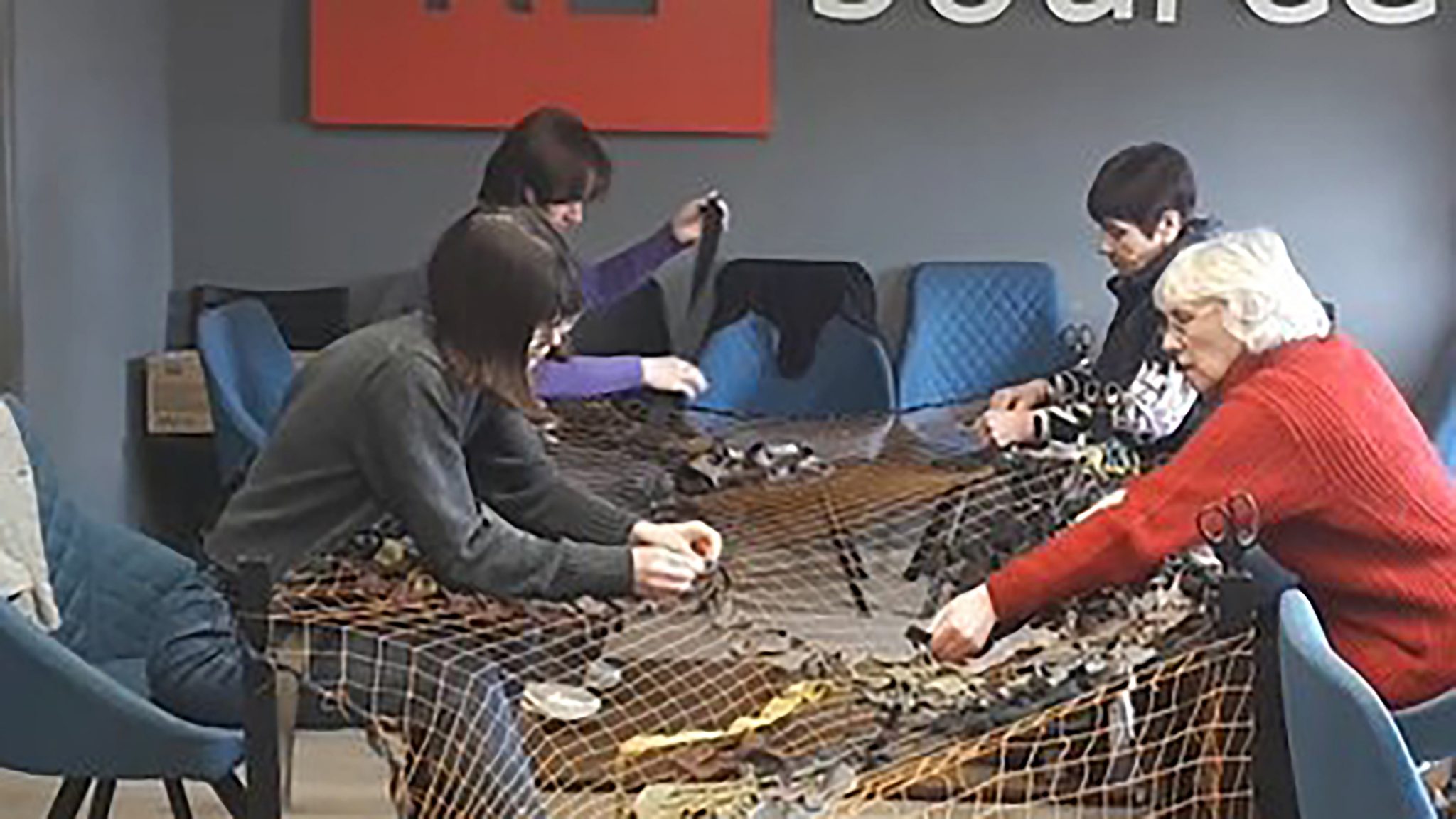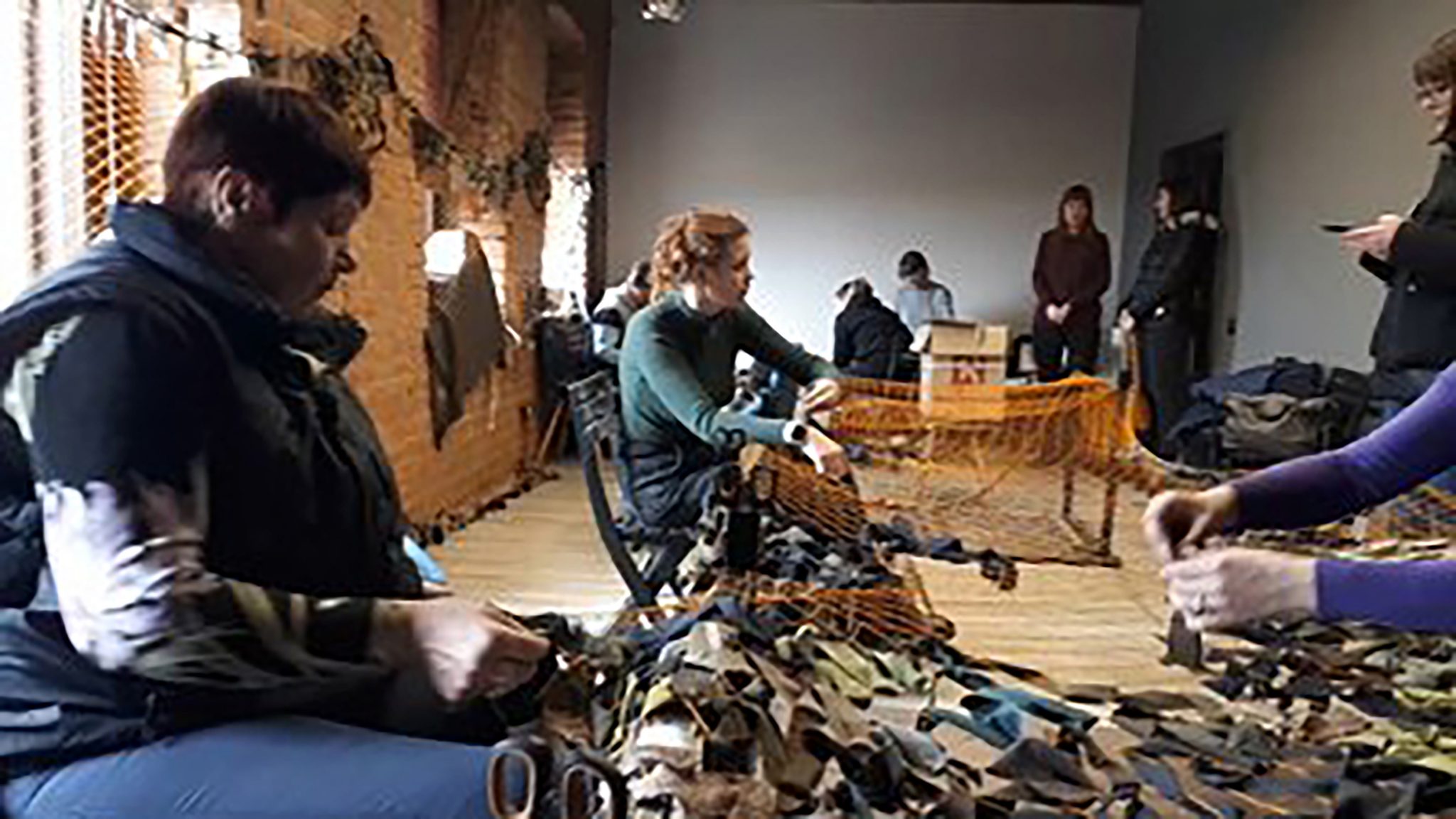 Учасники волонтерської спільноти, що працює в громадському хабі ReSource, розповідають, що небайдужі містяни привозять тканину, а волонтери ріжуть її на стрічки та плетуть сітки для територіальної оборони міської громади та військових частин, що стримують агресора в районах проведення бойових дій.