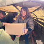 Перед завантаженням фур на складі відбулася zoom-зустріч Ганни Крисюк та Марії Мезенцевої, народної депутатки України, і координаторів штабу з-за кордону та України, голів ВЦА та міських голів «гарячих» точок, куди направляють гумвантажі.