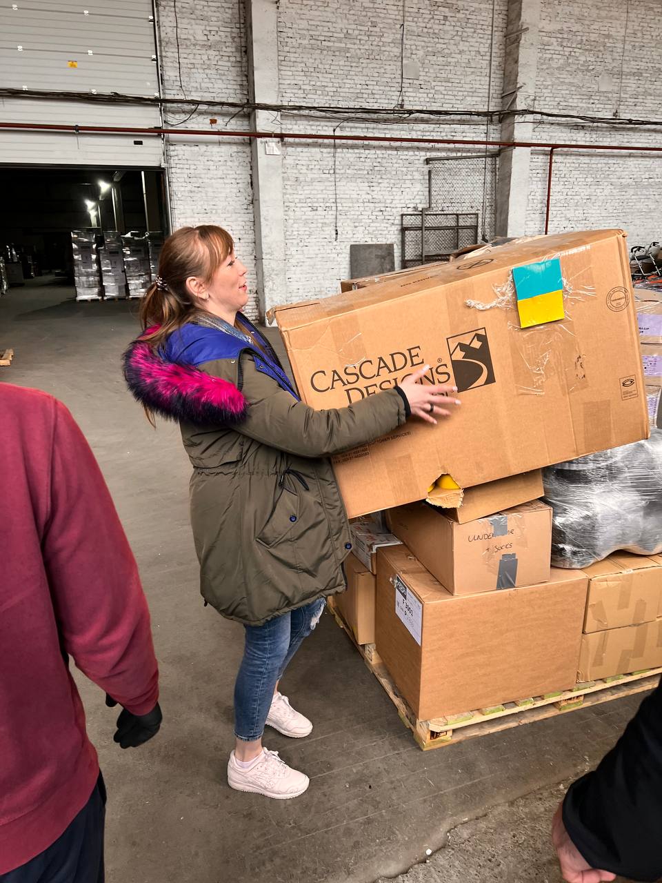— Цього разу відправляємо 7 вантажівок допомоги в Київську, Донецьку, Сумську, Харківську та інші області, де найбільше вдарила війна. Вантажі дуже цінні, бо це речі, які найчастіше запитують цивільні військові адміністрації, Тероборона чи Збройні Сили і які важко дістати. Ця допомога — не заслуга однієї людини, а взаємодія і співпраця з компаніями, волонтерськими організаціями, міністерствами, держагенціями, які об’єднали свої зусилля. Міжнародний штаб допомоги ставить за мету — не ділити, хто кращий, а хто гірший. Основна посада в нас всіх — це волонтер, ми маємо однакові права і працюємо для тих, хто захищає Україну, — зазначила голова Міжнародного штабу Ганна Крисюк.