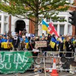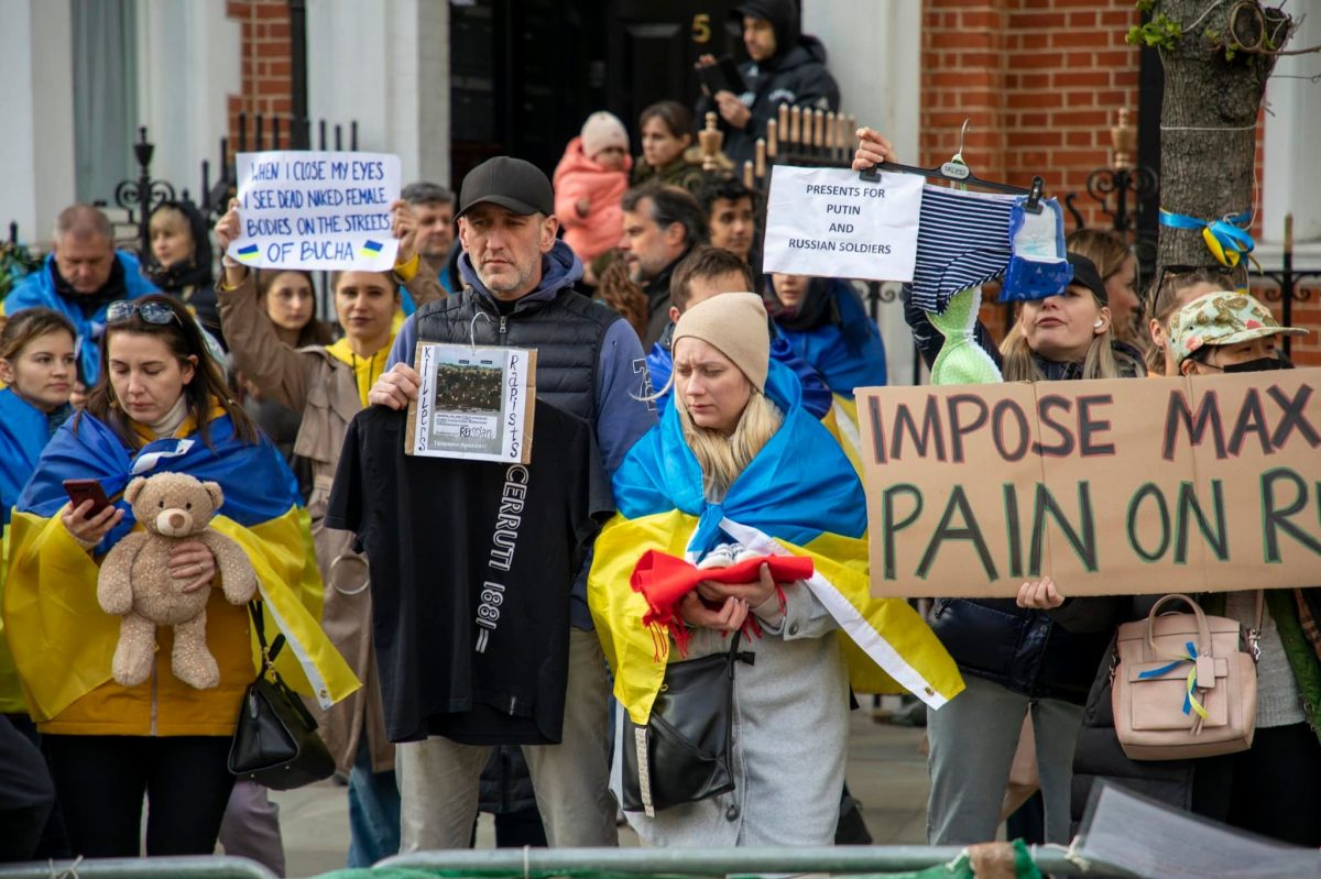У Лондоні біля стін посольства рф у Великій Британії влаштували акцію, на яку принесли «криваві трофеї» російським окупантам. Люди зв’язали собі руки й лягали просто на дороги на знак протесту проти масового вбивства українців у Бучі.