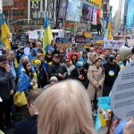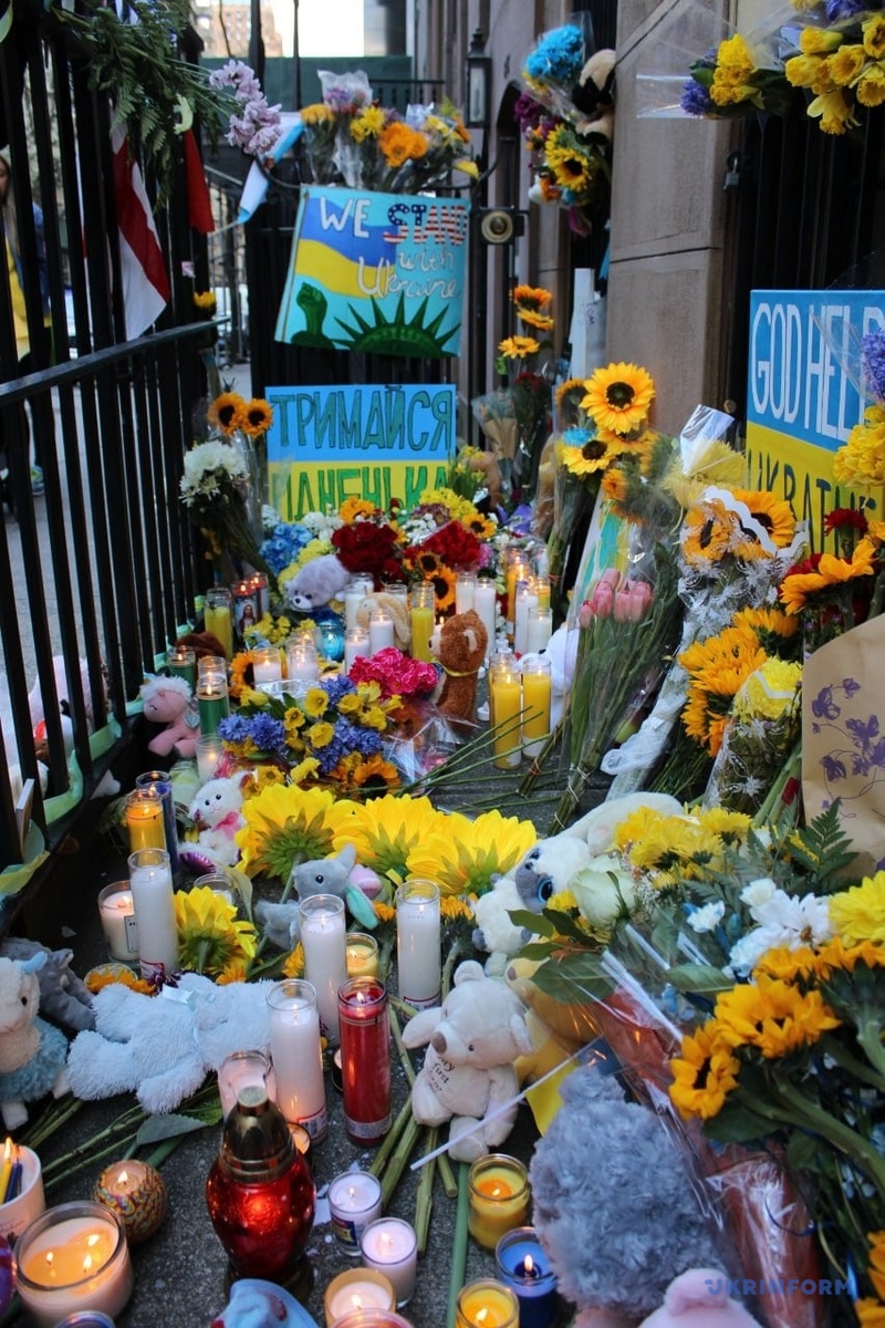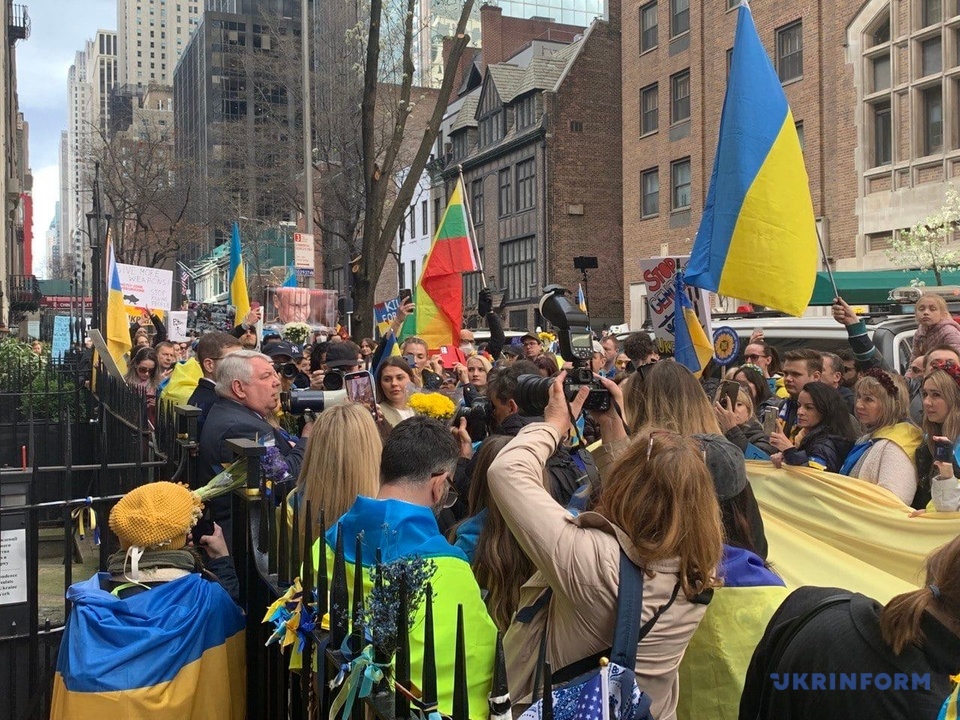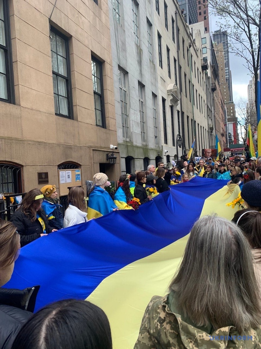 Генеральний консул України у Нью-Йорку Олексій Голубов запевнив учасників мітингу, що «жоден воєнний злочин, скоєний армією рф, жодне криваве злодіяння на нашій землі не залишиться поза увагою правосуддя».