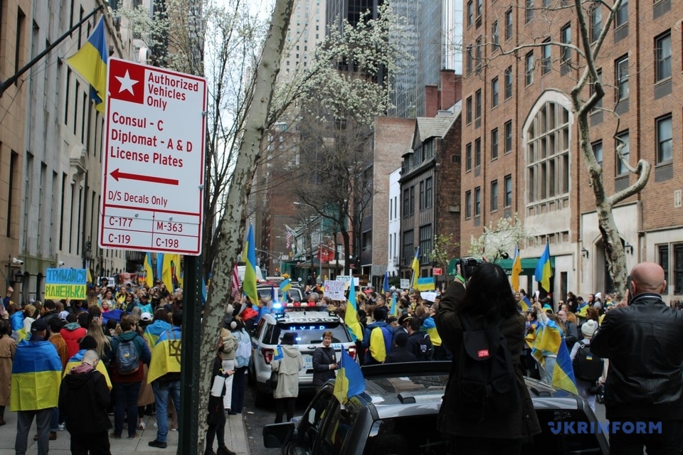 Як передає власний кореспондент Укрінформу, учасники акції зібралися на Таймз-Сквер і вирушили ходою центральними вулицями до генерального консульства України.