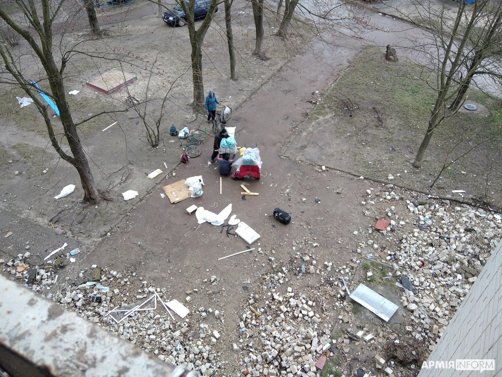 На руїнах гуртожитку, що в районі ЗАЗ, на проспекті Миру, на четвертому поверсі два військових намагаються розчистити розтрощену квартиру. Господар квартири прикордонник Олександр. З першого дня широкомасштабного нападу рф він захищав місто від рашистської навали. І лише за півтора місяця зміг потрапити у свою квартиру.