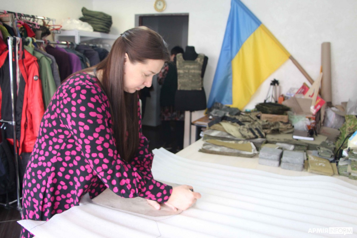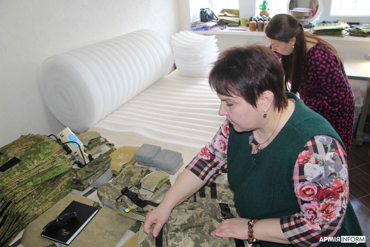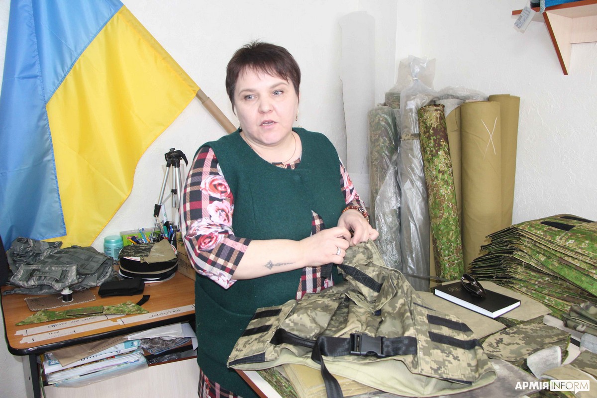 Журналістові АрміяInform пані Леся розповіла, що до виробництва спорядження для захисників вони з Тетяною долучили майстринь громадської організації «Екотворчість». Згодом почали приходити й жінки з-поміж вимушено переміщених осіб. Для них ця робота — і можливість відволіктися від пережитого, такий собі антистрес. Загалом у різні дні на перемогу в ательє працювало від 10 до 26 швачок. Хтось шиє на професійному рівні, хтось мав швацький досвід виключно на домашній машинці, а хтось сів за неї вперше тепер, безпосередньо в ательє. Та всіх об’єднує хист і бажання допомогти хлопцям на передовій. Недарма у кожний відшитий жилет дівчата кладуть з любов’ю зв’язане сердечко, ляльку-мотанку чи ще якийсь рукотворний сувенір кольорів національного прапора.