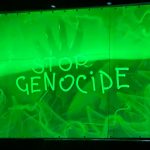 Наталія Лебердюк та Денис Матросов об’єднали малюнок із театром. За допомогою спеціальних ліхтарів на великому полотні на повний зріст менше ніж за 5 хвилин вони зобразили геноцид 1932-1933-х років та геноцид українського народу, який відбувається сьогодні через нелюдські злочини російських окупантів.