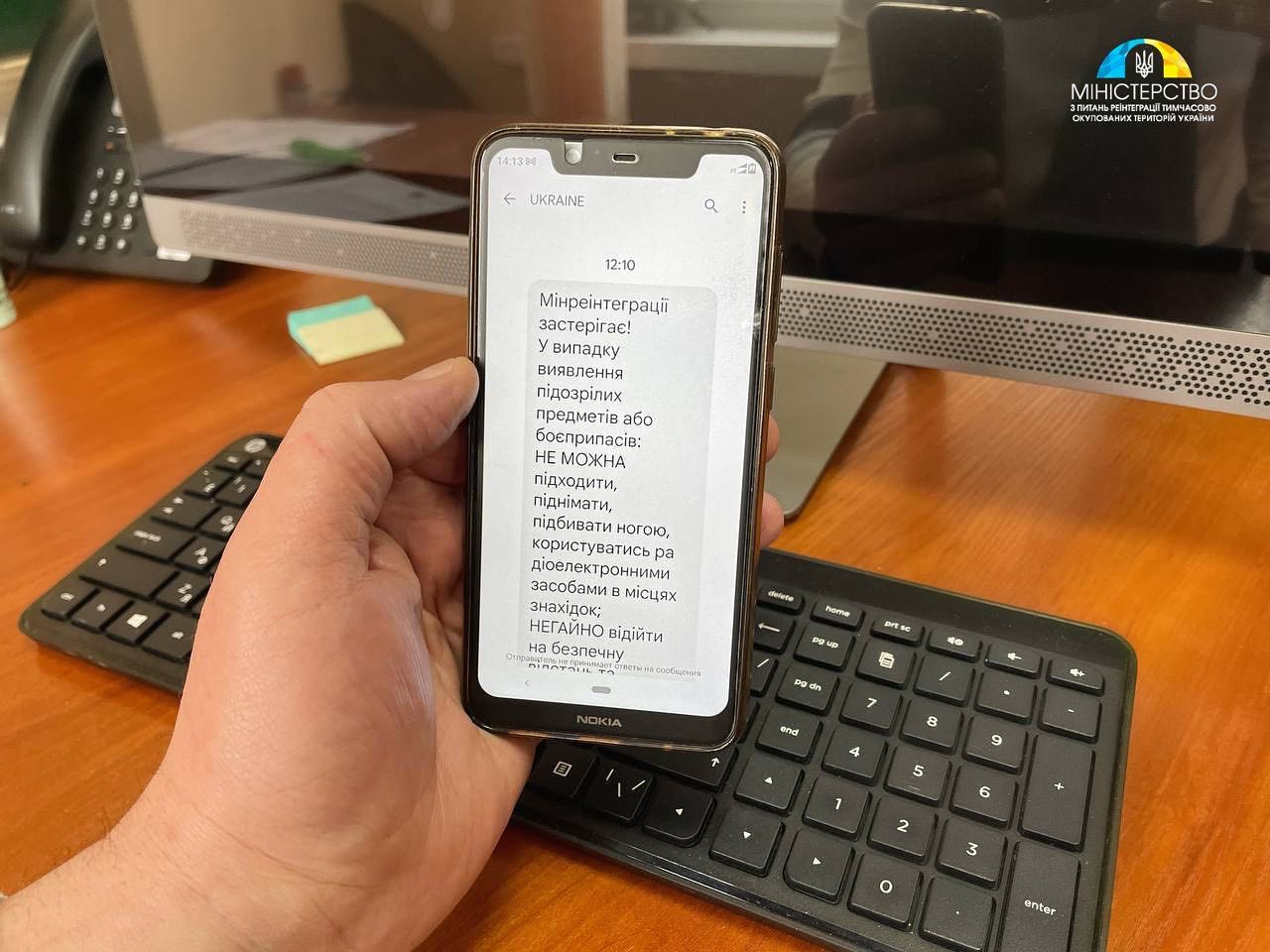 «Мінреінтеграції у співпраці з операторами мобільного зв’язку ПрАТ «ВФ Україна» забезпечило SMS-інформування громадян України про небезпеку мін та вибухонебезпечних предметів, а також – правила безпечної поведінки у разі їх виявлення.