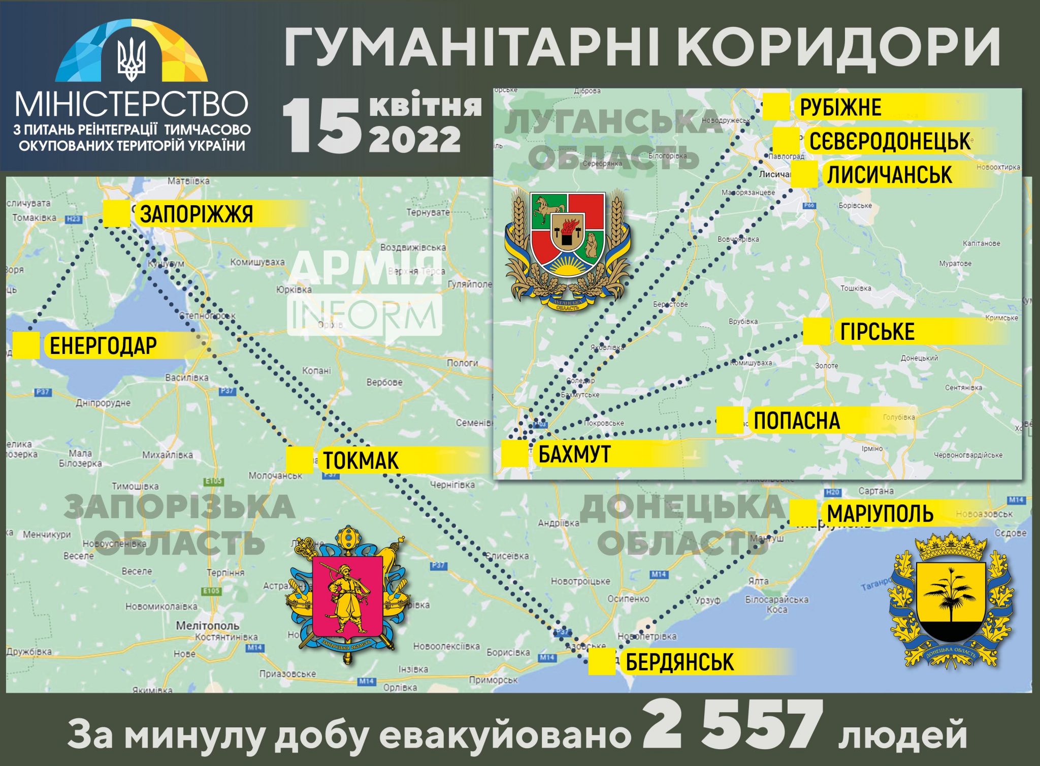 15 квітня 2022 року погоджено 9 гуманітарних коридорів: