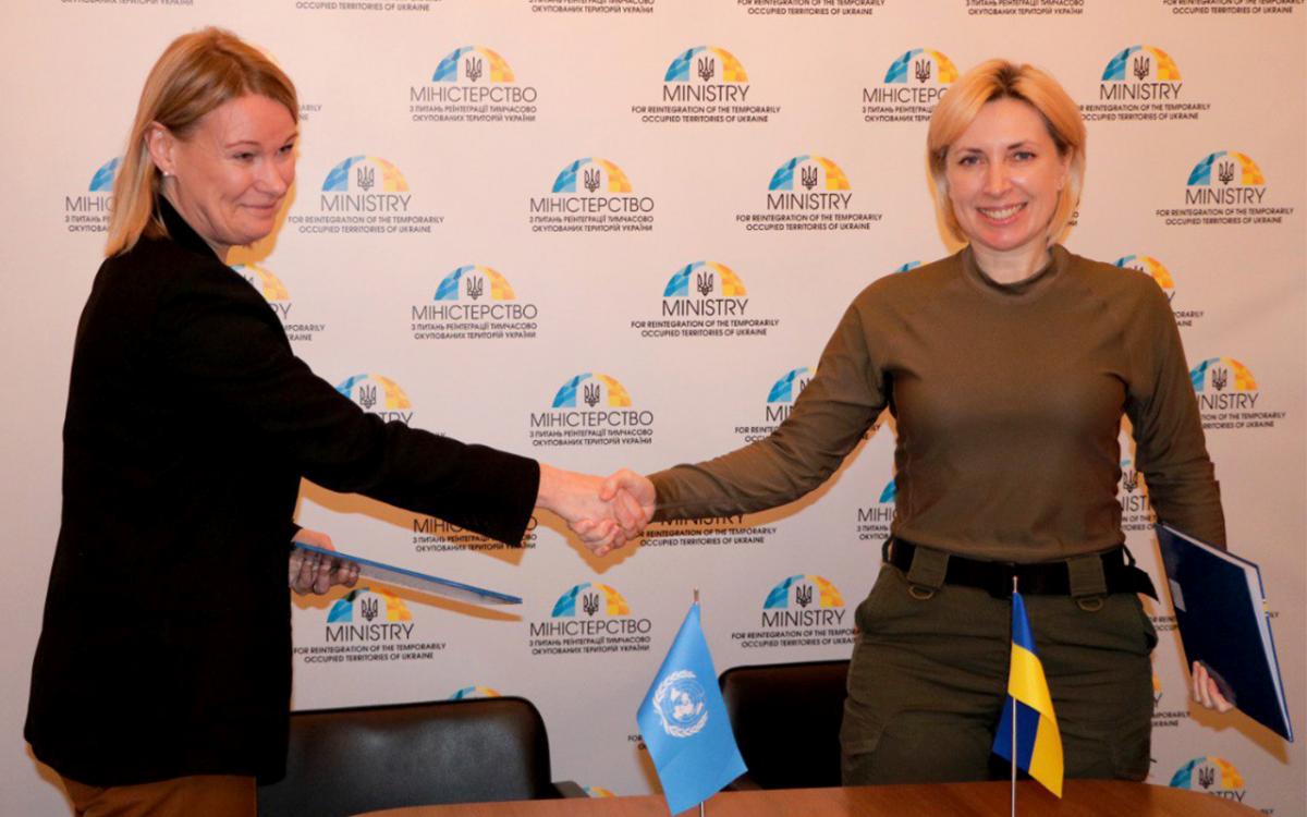 Міністерство з питань реінтеграції тимчасово окупованих територій України в особі Віцепрем’єр-міністра України Ірини Верещук та Управління Верховного комісара ООН у справах біженців (УВКБ ООН) в особі голови представництва УВКБ ООН в Україні Кароліни Ліндхольм-Біллінг підписали меморандум щодо співробітництва у розв’язанні гуманітарних проблем та наданні захисту і допомоги внутрішньо переміщеним особам, інформує сайт Мінреінтеграції.