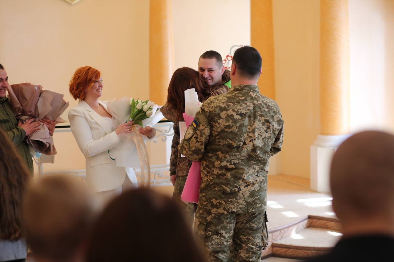 – І у війну треба одружуватися, дітей народжувати, жити треба. Ба більше, що Ганна і Юрій чекали цього дня з 2018-го. Я певним чином себе винним вважав, що мої підлеглі для такої важливої в житті події все ніяк не могли знайти часу. Тому, не чекаючи вихідних чи свят, молодята стали на рушник рівно посеред весни, – говорить командир військової частини.