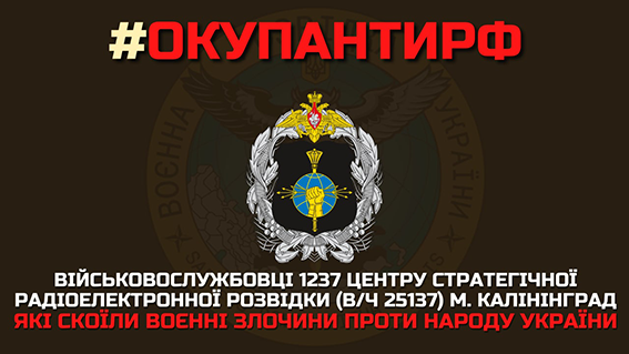 Головне управління розвідки Міноборони опублікувало список злочинців центру стратегічної радіоелектронної розвідки рф, які скоювали геноцид українського народу.