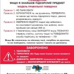 Фахівці нагадали основні правила поводження з підозрілими та вибухонебезпечними предметами: не чіпай, не підходь, повідом службу порятунку за номером 101!
