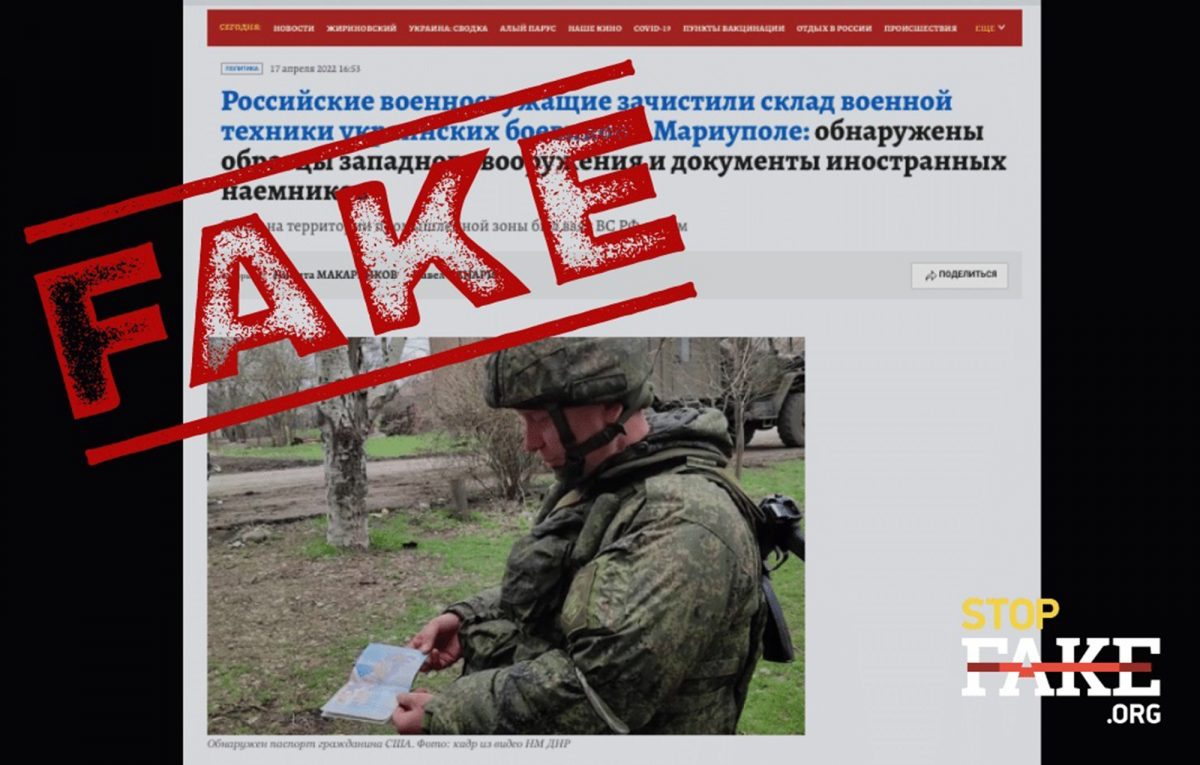 Зокрема росіяни радісно оголосили, що нарешті знайдено паспорт громадянина Сполучених Штатів Америки. Звісно, все це, на їхню думку, свідчить, що цей громадянин перебував на території України, брав участь в бойових діях у Маріуполі на боці української армії.