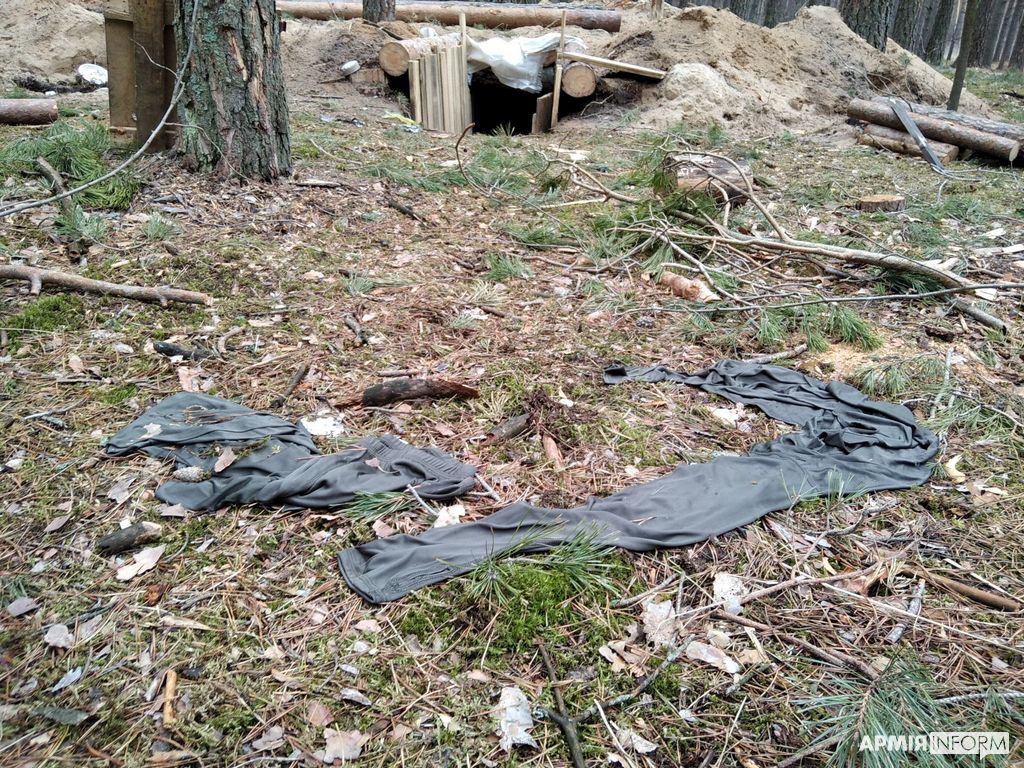 Позиції російських окупантів справляли враження великого смітника, де щойно були люди, які змушені були тікати. Серед загубленого — особисті речі. Наприклад, брудні труси, які доволі часто траплялися в лісі навколо, що викликало думки про переляк, який вони отримали від контратак української армії. Або термобілизна в такому ж стані.