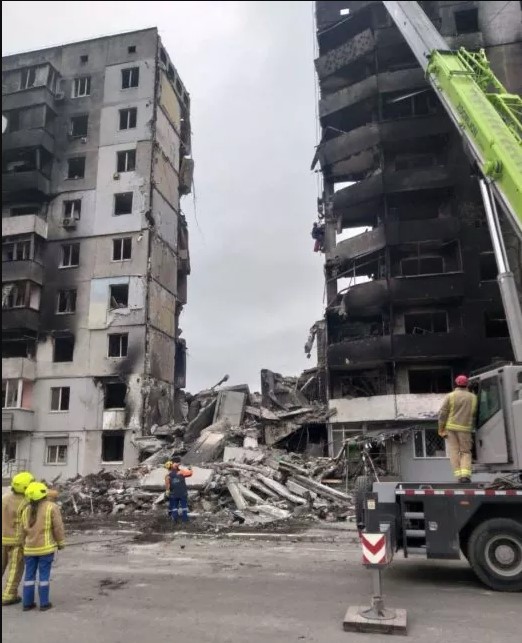 In front of the Palace of Culture, an apocalyptic picture was unfolding: rescuers attached a steel cable to a concrete panel on the fifth floor of a destroyed residential building and tried to rip it off. The Russians dropped a bomb, which according to the sappers was a FAB-500 (a Soviet-designed 500-kilogram general-purpose air-dropped bomb with a high-explosive warhead, primarily used by the Russian Air Force) and the apartment block fell like dominoes.