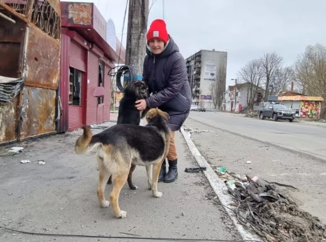 I asked Natalia whose dogs they were. She laughed nervously and said that they were the neighbors’ dogs. The neighbors fled the city, abandoning their pets to the mercy of fate. So, the two dogs spent all those terrible days with Natalia.