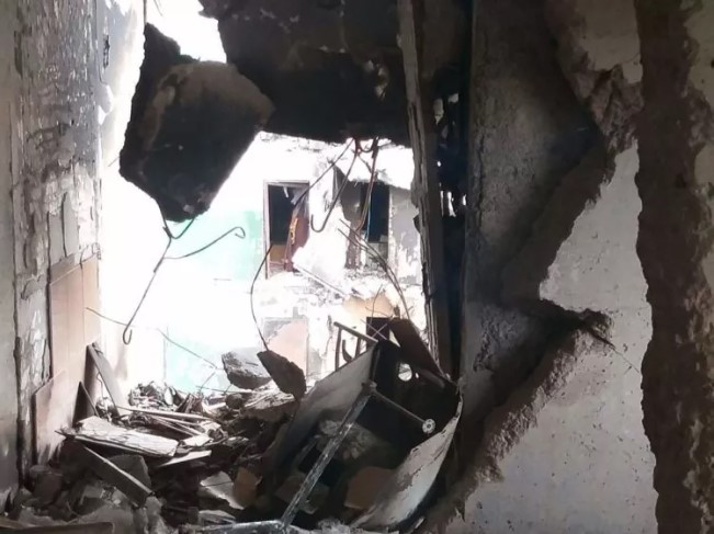 According to him, the bomb hit the house at about 8.30 PM on March 17. The blast flung his wife into the door and buried her under shards of broken glass and things from the broken wardrobe nearby. His son was in another room, he was thrown to the floor by the explosion, severely wounding him by pieces of falling plaster. Mykola was in the kitchen at this time, he was the luckiest one to remain almost unharmed.