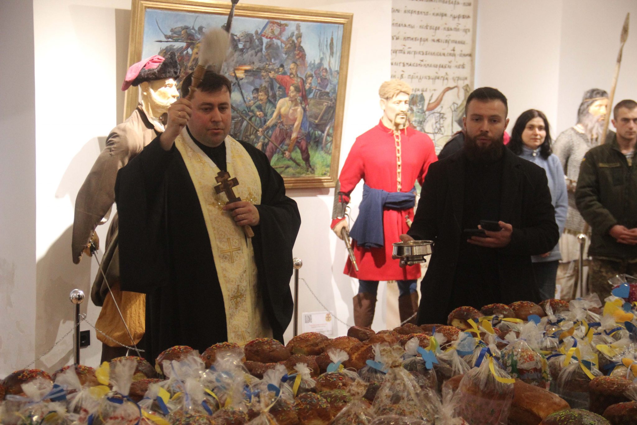 Освятили паски настоятель Гарнізонного храму святих апостолів Петра і Павла, голова Центру військового капеланства Львівської архієпархії УГКЦ отець Тарас та військовий капелан Української православної церкви отець Мар’ян.