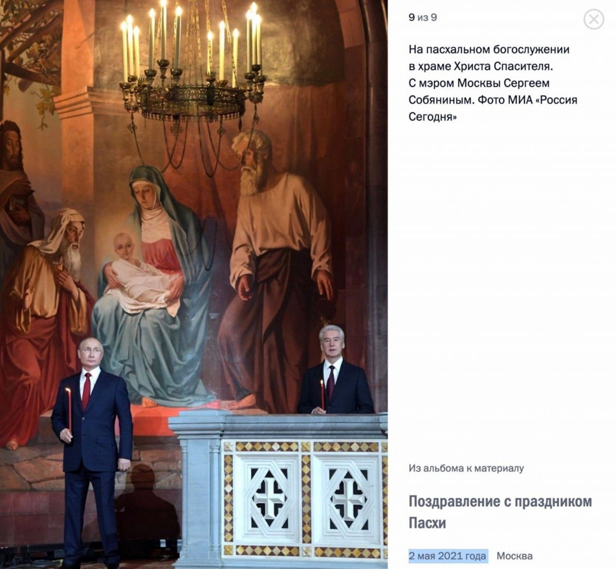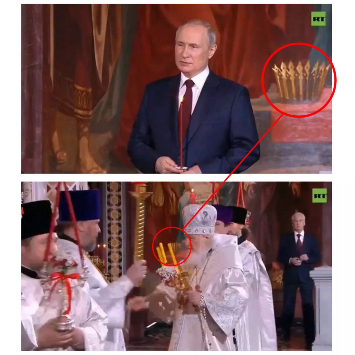 Так сталося й на Великдень, коли російські медіа оприлюднили відео та фото, на яких нібито президент рф у православному храмі в москві взяв участь у службі. Але може окупанти не знають, що кам’яний вік давно минув і в наш час подібну брехню можна швидко викрити.