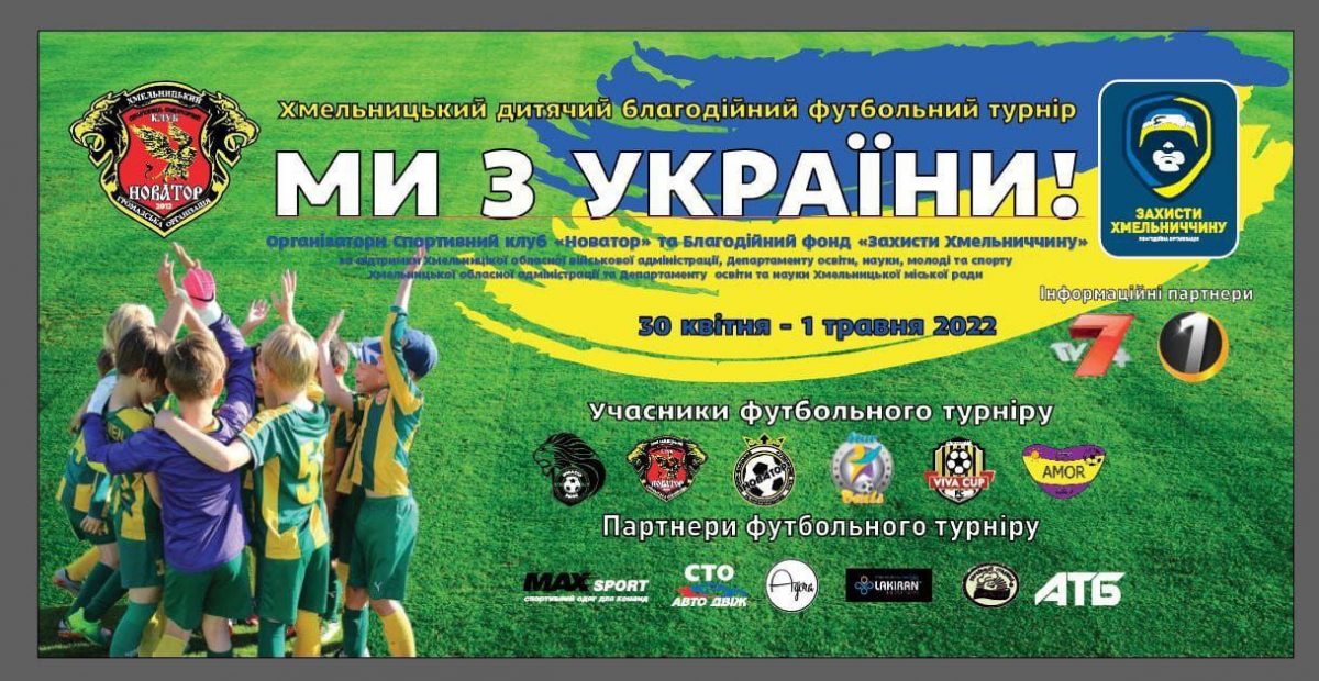 У Хмельницькому з 30 квітня по 1 травня пройде дитячий благодійний футбольний турнір «Ми з України!». Мета заходу — збір коштів для потреб маленьких українців з постраждалих від російських окупантів регіонів України. Про це повідомляється на офіційній сторінці Хмельницької обласної держаної адміністрації у фейсбуку.
