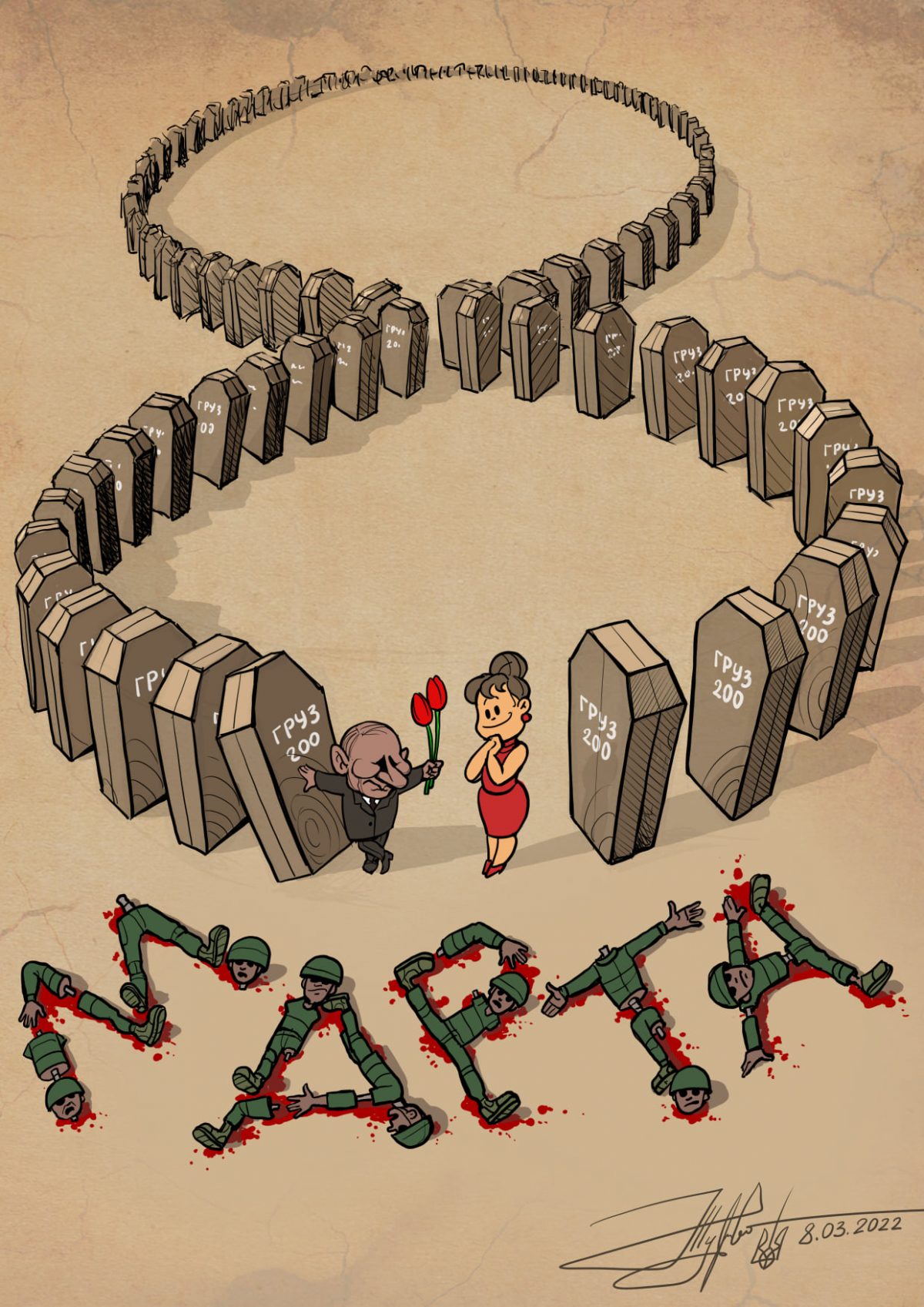 — Я малював карикатури й до цього, ми співали тематичні пісні, наша команда працювала над календарями, футболками з патріотичними зображеннями, другим томом книги «Знай наших». Проте з 24 березня щодня видаю чергову карикатуру на тему гарячої фази війни в Україні.