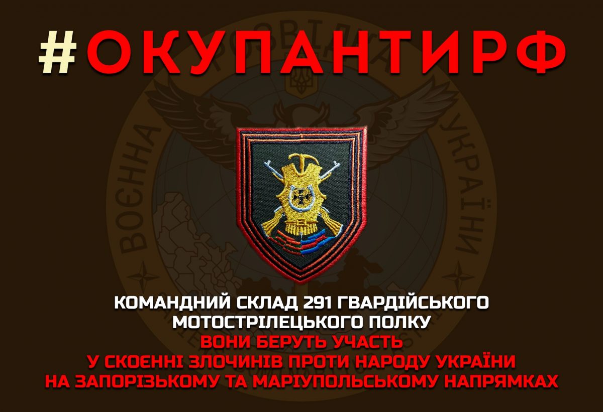 ГУР МО України здобуло список командного складу 291 гвардійського мотострілецького полку, який бере участь у скоєнні злочинів проти народу України на Запорізькому та Маріупольському напрямках.
